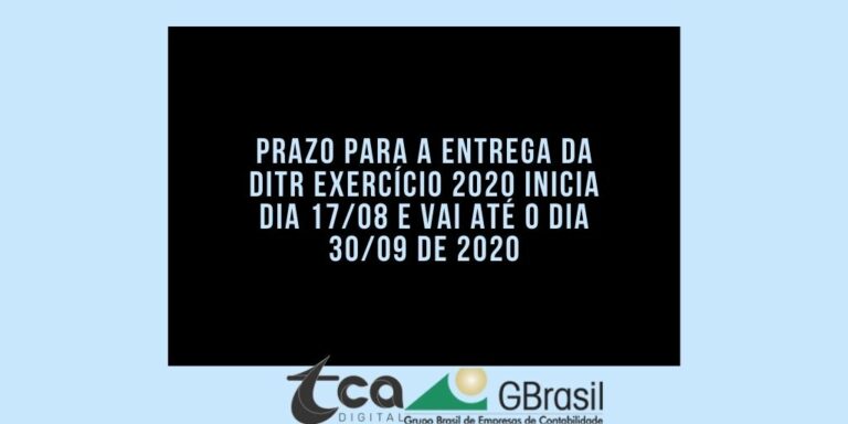 Prazo para a entrega da DITR exercício 2020 inicia dia 17/08 e vai até o dia 30/09 de 2020